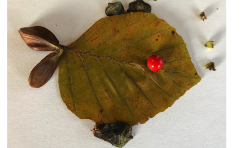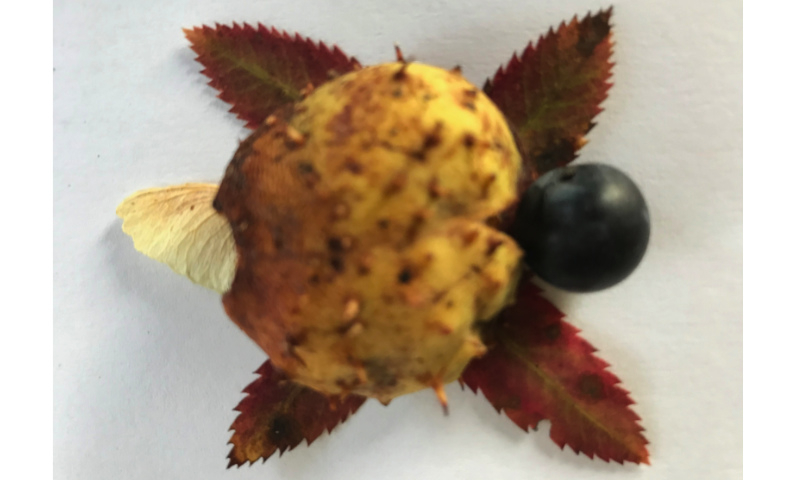Sammle Kastanien, Eicheln, Bucheckern, Hagebutten, Baumrinde, ... Daraus lassen sich zum Beispiel schöne Gestecke machen. Sammle auch bunte Herbstblätter. Lege die Blätter zwischen Zeitungspapier und staple einige schwere Bücher darauf. Nach einigen Tagen sind die Blätter trocken und glatt gepresst. Nun kannst du damit Bilder gestalten.