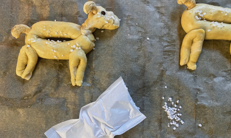 Nun drückst du von dem mitgeliefertem Salz etwas auf jedes Lamm.
