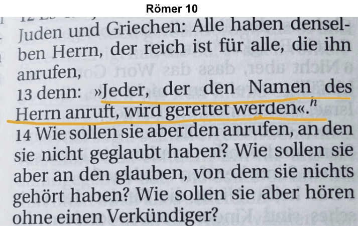 Jeder Mensch muss für sich persönlich entscheiden, ob er an Jesus, den Retter, glauben und Gott anrufen will, um gerettet zu werden.
