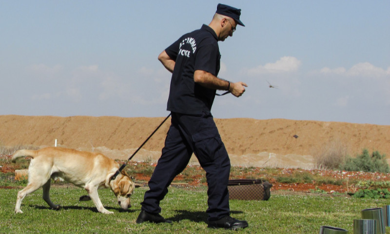 Kurze Zeit später kommt die Polizei mit einem Polizeihund. Der Hund schnuppert kurz an der Mütze, damit er weiß, wie derjenige riecht, nach dem er suchen soll.