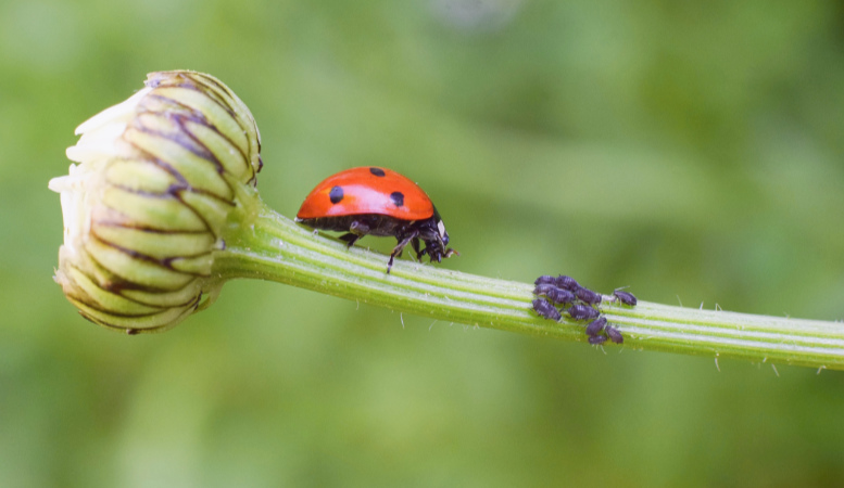 Marienkäfer sind sehr nützlich. Sie befreien Pflanzen von schädlichen Blattläusen.