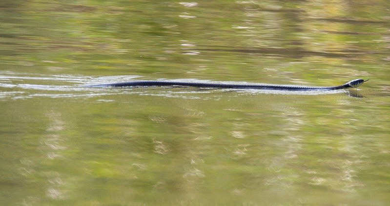 Die Ringelnatter wird bis zu 1,5 m lang (also in etwa so lang, wie du hoch bist :-)) und ist ungiftig. Daher brauchst du vor ihr keine Angst zu haben. Es ist jedoch immer sinnvoll, Abstand zu halten und nicht zu versuchen, sie anzufassen. Denn wenn sie sich bedroht fühlt, zischt sie wie eine gefährliche Schlange und stellt sich dann entweder tot oder scheidet ein stinkendes Sekret aus. Im Ernstfall kann sie auch beißen.