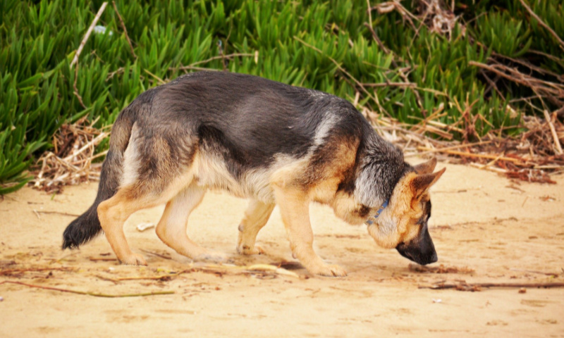 Auch der Dieb schwitzt. Und ganz wenig von seinem Schweißgeruch dringt selbst durch die Sohle seiner Schuhe. Und da, wo der Dieb hingetreten hat, riecht es dann auch. Um das zu riechen, braucht man allerdings eine Supernase, eben eine Hundenase.