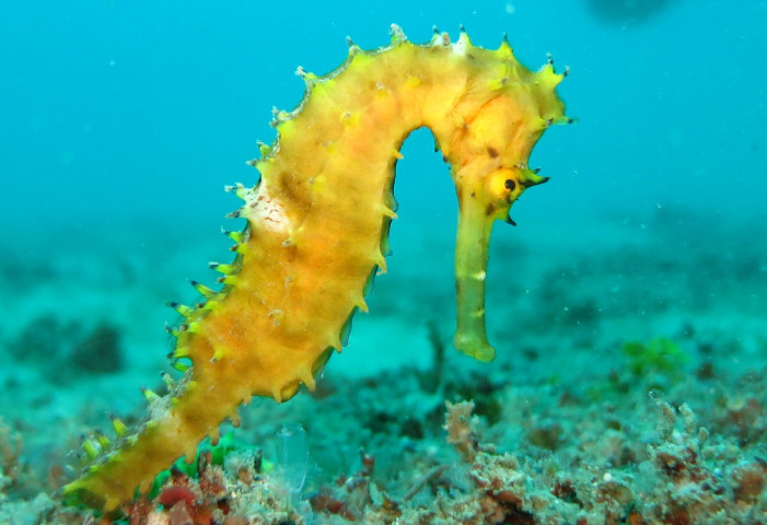 Beim Seepferdchen kann das eine Auge auf der Lauer vor Feinden sein, während das andere Auge nach einer leckeren Speise, wie beispielsweise einer Salzgarnele, sucht.