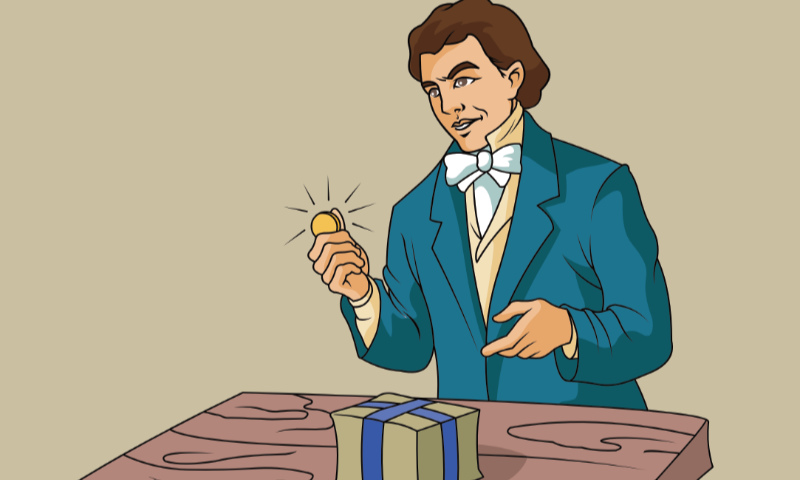 Eine Goldmünze! Sie war 4-mal so viel wert wie die Münze, die er dem armen Mann gegeben hatte.