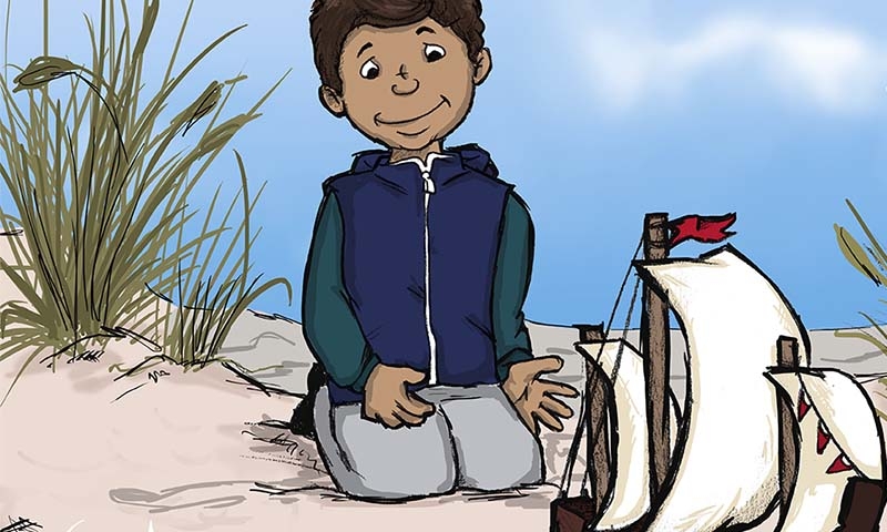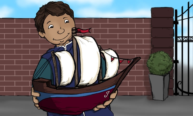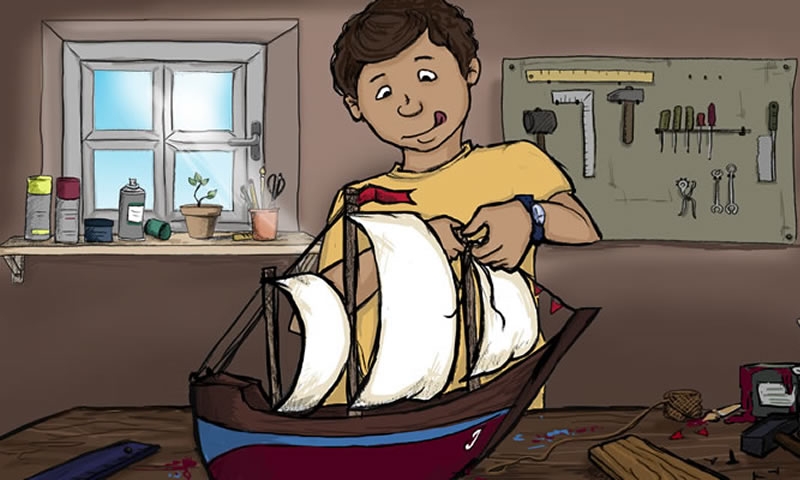 Mit Begeisterung baute er tagelang an einem Segelschiff. Er durfte sogar in die Werkstatt seines Vaters.
