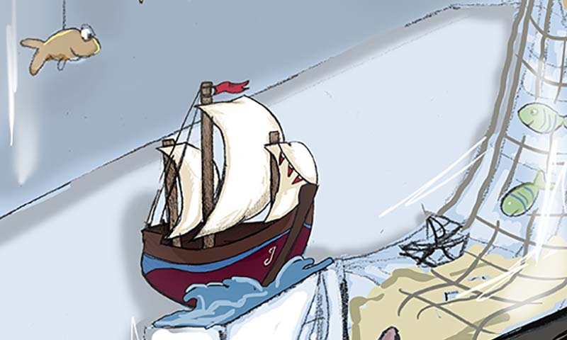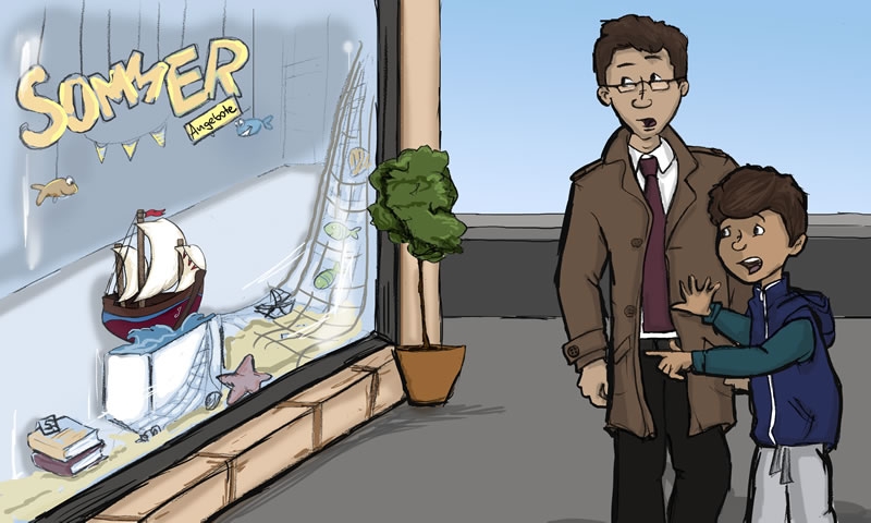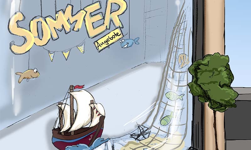Mehrere Wochen vergingen. Eines Tages entdeckte Jörg in einem Schaufenster ein Schiff.