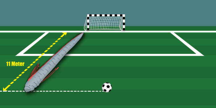 Wenn du einen ausgewachsenen Riemenfisch auf ein Fußballfeld legen würdest, käme er vom Tor bis zur 11-Meter-Marke!