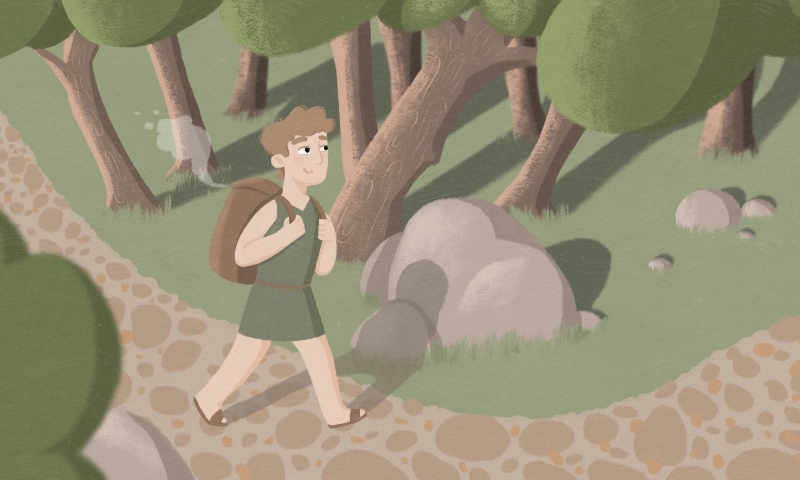 Als er am Kriegsplatz ankam, sah er auf der Seite der Feinde einen richtigen Riesen. Fast drei Meter war er groß. Er hieß Goliath.