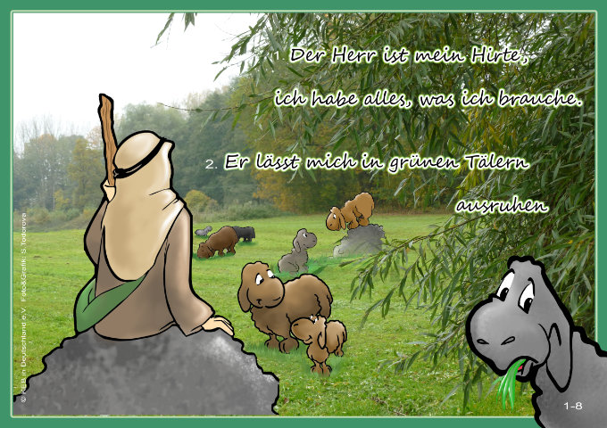 In der PDF-Datei findest du ein Ausmalbild und Bilder zu Psalm 23