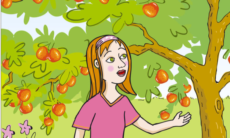 „Warum hängen an diesem Apfelbaum so mickrige Äpfel?“ - fragt Karo Herrn Weiser, ihren Nachbarn.