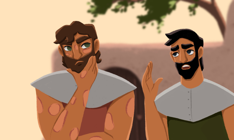 Das Mädchen hörte, dass Naaman krank war. Er hatte Aussatz. Das ist eine sehr schlimme Hautkrankheit.