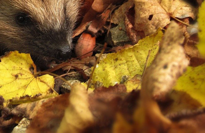 Ein Herbsttag geht zu Ende. Die Sonne geht unter und die Dämmerung bricht herein. Da bewegt sich etwas in dem Blätterhaufen unter den Bäumen. Eine feuchte, schwarze Stupsnase zeigt sich, dann zwei runde kleine Augen …